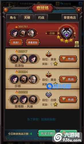 天梯系统,约战,积分可以兑换奖励,每天限制竞技场次数让你有更多的时间去调整你的PK套路和组合。