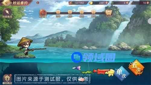 小将军可以在主界面的【好运垂钓】中进入界面,每次垂钓需要消耗「黄金鱼钩」,「黄金鱼钩」可以通过户外探险中战斗模块获得,也可以通过春日商店购买获取。