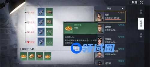 每个聚落中都有着一些可培养好感度的成员,点击该 成员条目,即可查看该成员的具体信息和生平简介,同时还会将该成员喜爱的礼物(食物)列举出来。根据提示赠送该成员喜爱的礼物,可以获得更多好感度加成,每天最多可对1位成员赠送10次礼物。