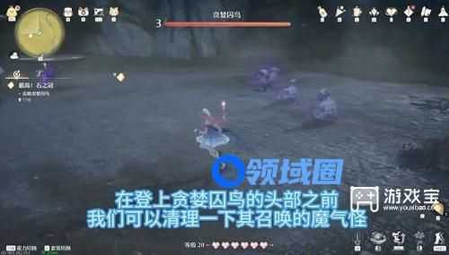 冲锋鸟车,保持距离绕圈规避。跳上平台,需规避魔气怪,头顶部下砸破坏宝石击败贪婪囚鸟吧。