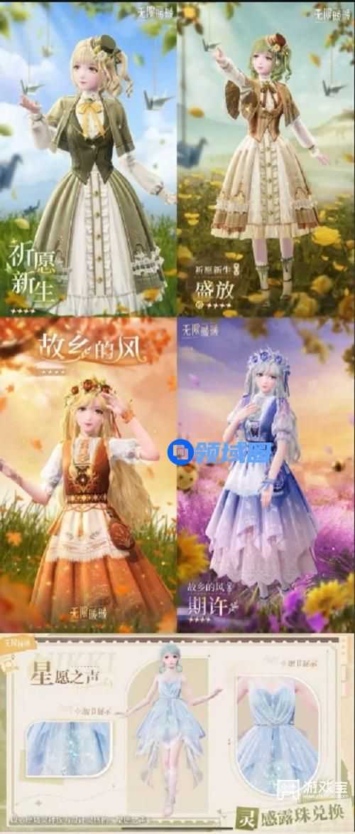 在大地图收集灵感露珠后,找蓝龙兑换,付费测时有两套,加上上次公测前瞻公布的,目前一共知道三套(应该都是四星),真的都很好看。