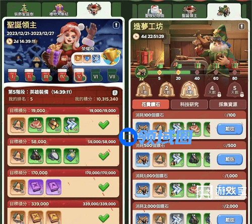 圣诞领主这活动,看图就知道是七天的领主排行榜比拼,大家斟酌着参与,拿个基础奖励也挺不错。造梦工坊嘛,跟之前驯兽达人活动(就是宠物系统刚开那会儿)还有杰西获取活动挺像的,每天有点小任务要完成,每完成三个就能拿到相应的积分奖励。