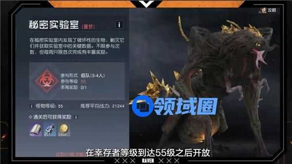 难度也不容小觑,想要参加的幸存者最好平均战力到达20000以上、角色等级不低于55级、至少三人组队前往。