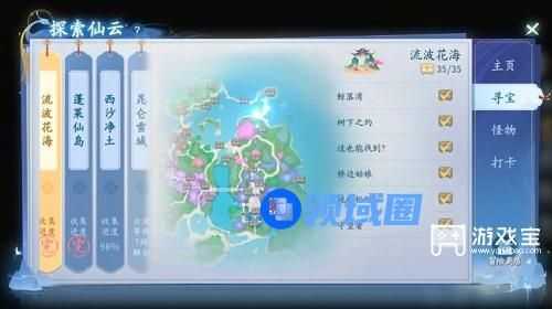 1、海莲花:在巨石上,有一朵小花,它是古怪的黄花。玩家需要按数量顺序解除花朵封印,即可获取奖励。