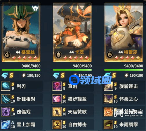 1、风属性爆头阵容推荐:格蕾丝,卡茨,特蕾莎