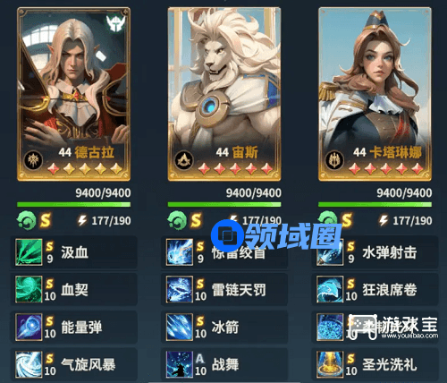 3、水属性法伤阵容推荐:德古拉,宙斯,卡塔琳娜