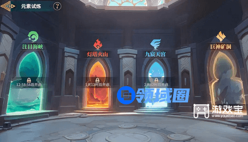 游戏内每天开放一种元素之门可以挑战,记得选择克制当前元素之门的队伍。