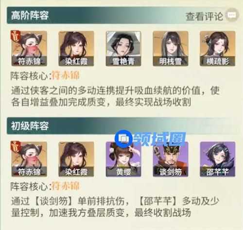 主C符赤锦,副C雪艳青,有输出有续航的阵容,适合多种场景,强度也非常不错。