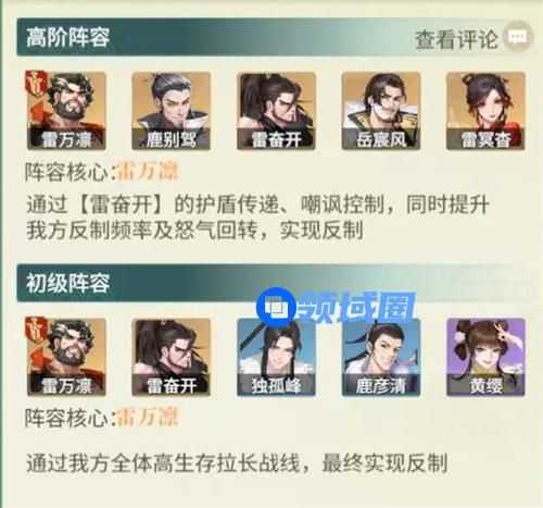 核心角色雷万凛,这个阵容适合PVP,主打雷盾生存能力强。