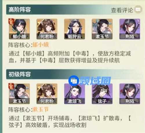 主C郁小娥,副C漱玉节。这个阵容推荐PVE用,缺点是前期刮痧,后期的强度会比较突出。