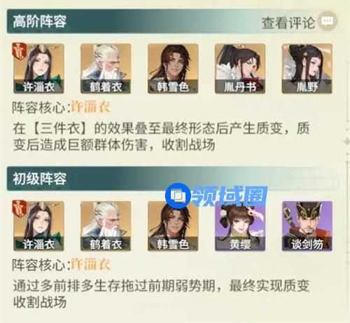 主副C许缁衣/韩雪色,这两个角色单独拿出来输出也非常强势了,搭配在一起更是上限极高,但培养的成本比较高。