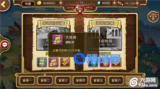 每周1、3、5、6、日,均有巴奇的宝藏。通过攻打不同难度的日历,可以获得相当可观的贝里总量。