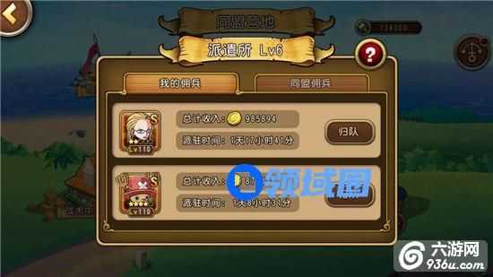 升级到6级后,同盟派遣所可以派遣两名人物获取贝里,每天大概可以获得100万贝里以上。
