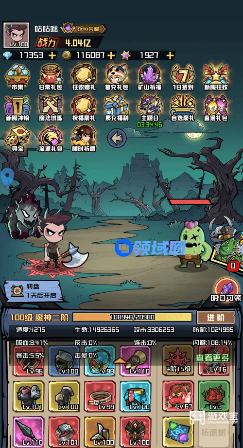 奖励:欧皇宝箱1个、委托刷新券10张、进阶石1000个。