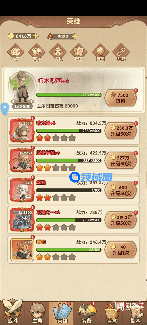 3、优先提升核心角色