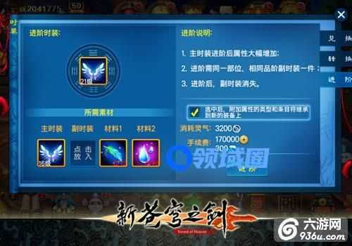 时装系统作为《新苍穹之剑》中最受欢迎的玩法之一,在新资料片中也优化进阶。时装在升阶时,勾选对应按钮后再进行装备升阶,升阶后的时装将会继承原时装的空心附加属性。这一更新让仙侠们在升阶时装时候再无属性方面的顾忌,放心升阶。属性继承,时装系统依然会给众位仙侠带来强悍的助力!