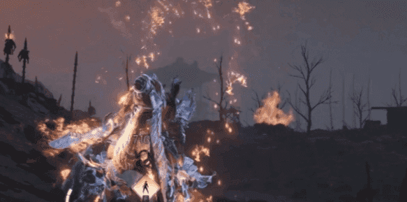 2、进入第一阶段后,他会扔出火焰长刀,此时注意躲避长刀的攻击范围。