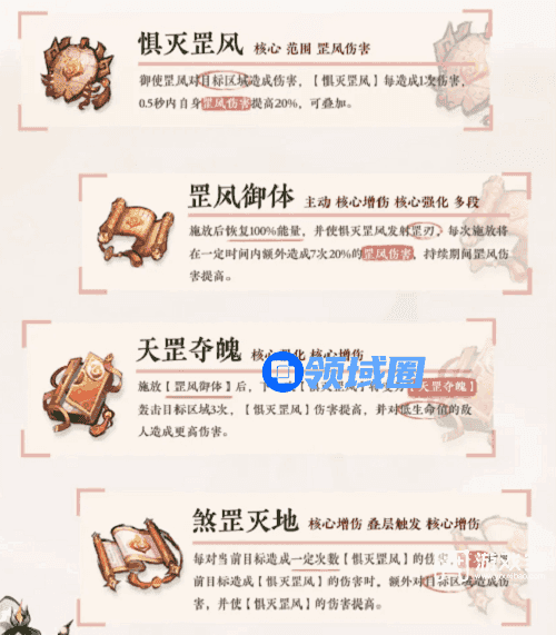 1、核心神通(惧灭罡风):每造成一次罡风伤害,0.5s内自身伤害提升20%,可叠加