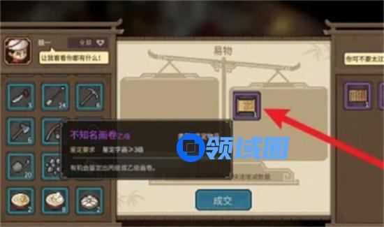 2.途径二:【易物】,部分NPC身上会刷出不知名画卷,玩家可以使用等价的道具来进行易物,从而获得不知名画卷。