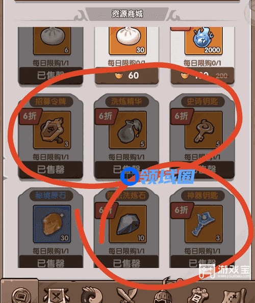 优先买红圈这几个资源,秘境源石在3级工人之前可以看情况买,体力除非氪佬或者急用不然不推荐