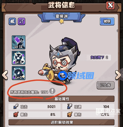 (3)夏侯惇由于没有加弹道的羁绊,导致宝石成型后输出跟不上,所以平a输出大幅度跟不上另两把弓。但前几波过渡清兵挺好用,另外圣兽挑战之类的等级优先度可以排在黄忠和夏侯渊后面一点,当半个主力