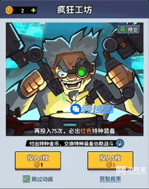 特种金币的置换特种装备的金币,也是前期战力最快的来源(所以剥夺闪击技能尤其重要),特种金币可以适当储存,等相应活动来临或冲击挑战等关键节点用,以达到最大奖励,不过特种装备收集后会有属性的总加成,大家可以根据自己的情况进行选择。