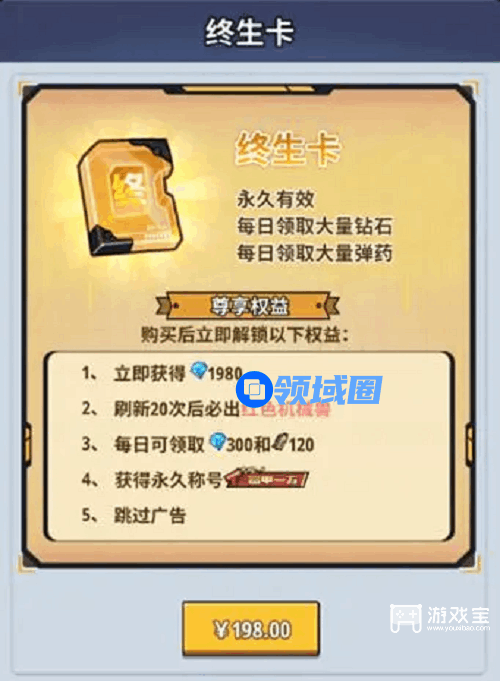终身卡——从长期的钻石收益来说,终身卡也是一笔非常值得的长期投资,同时20次必出红色机械兽的特权从长远来看也是一个非常有价值的投资。