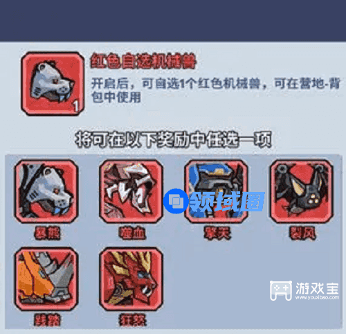 - 红色机械兽-暴熊:专注于为主角提供持续的暴击率增益,使每一次攻击都有机会释放出更高的伤害,是追求高伤害输出玩家的理想选择。