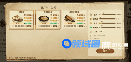 注意,推广菜谱不是实时生效的,你设定了推广菜谱之后,需要一定游戏时间,让城市的人们逐渐从原来的饮食结构转换成你设计推广的饮食菜谱。