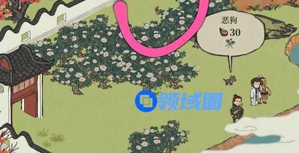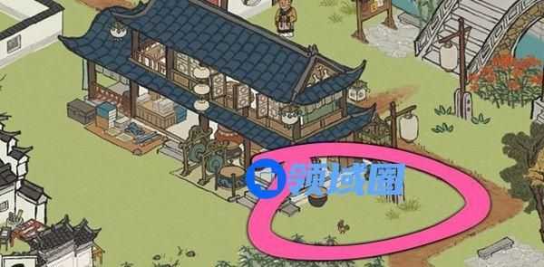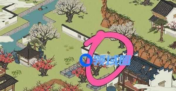 3、在杂货阿意的店左上角围墙中,需要砍掉外面两棵树才能进去。