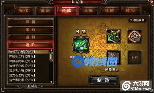 玩家可将自己以拥有的紫色套装进阶成为史诗装备。