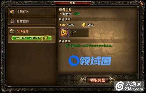 开通VIP即可获得VIP专属日常任务,每天可完成一次。可获得经验、黄金、VIP币等。