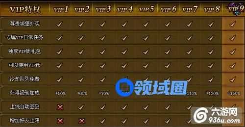 2、当玩家成功开通VIP成为会员后,VIP图案将被点亮,VIP成长值以10/天增长,累计一定数值,VIP等级将会提升到下一等级;