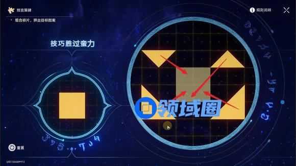 第一关很简单,先对齐正方形后放入上下两个三角即可