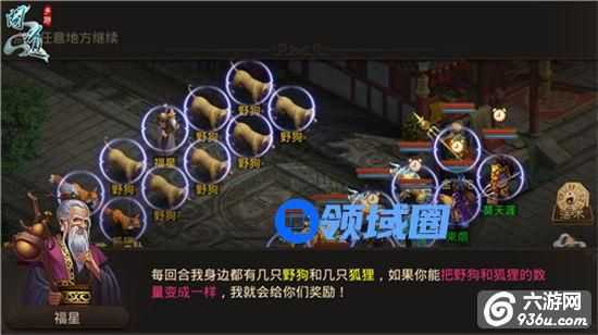 福星是一位有着超级强迫症的神仙,他坚定地认为“成双成对的,才是有福气的”。挑战福星并进入战斗后,福星周围会出现两种类型的小怪,野狗和狐狸。然而野狗和狐狸的数量并不相等,道友们需要做的就是让福星身边的野狗、狐狸数量相等且不为零。