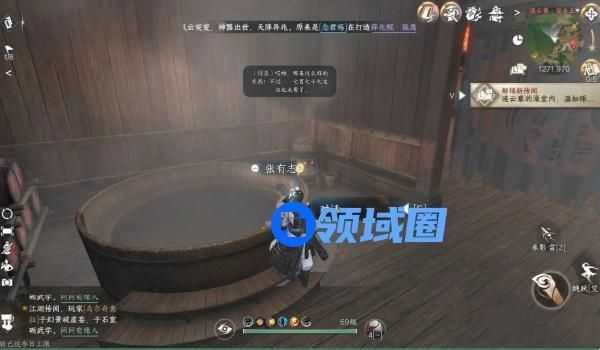 2、在连云寨澡堂1271.970处找到并和张有志对话。