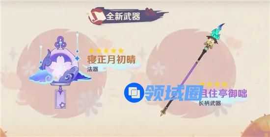 3、祈愿·神铸赋形:活动期间,限定5星武器“法器·寝正月初晴”“弓·白雨心弦”的祈愿获取概率大幅提升,同时限定4星武器“双手剑·恶王丸”“长柄武器·断浪长鳍”“弓·朦云之月”以及4星武器“单手剑·笛剑”“法器·昭心”的获取概率也会提升。