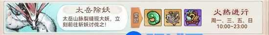 太岳除妖每次活动赠送三次免费挑战机会,有分等级梯度的伤害排行榜,同时,每次挑战可以获取一些材料(前期获取三阶材料的重要途径,且三阶材料非常稀缺)和装备。每次活动可以额外购买三次挑战机会。