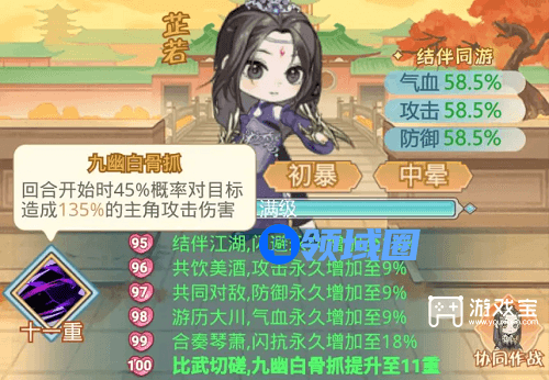 宠物优先选择“朱颜”增加暴击,技能效果降低目标暴击抵抗百分比,让主角更容易打出暴击伤害