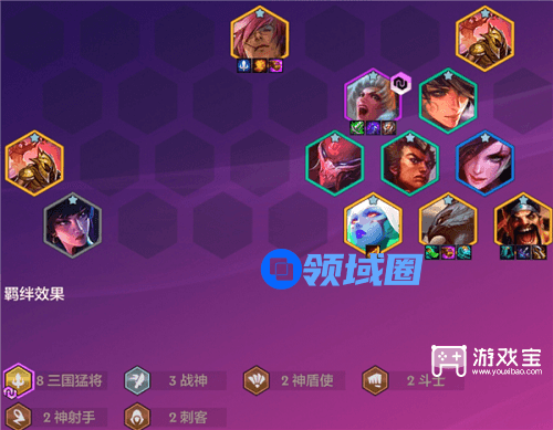 8三国:提供高额的攻击力和法术强度加成,是阵容的核心羁绊。