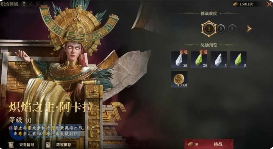 因为天赋提升的资源只有通过这个副本才能够产出,所以大家不可能错过,只要大家想拿到天赋石,那么在选择出战英雄时就需要注意了,因为有些规则是必须要遵守的,例如大家遇到的boss跟最后获取的元素奖励是不同属性的,还有相互克制的效果。