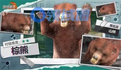 游戏里棕熊的出没范围是比较可控的,经常会出没在山林,因为体型庞大,所以狩猎难度比较高,属于中等难度,在刚开始这些棕熊会成为玩家生存的最大威胁,尤其是前期没有可用的武器,所以在山林搜寻物资的过程中,要时刻小心周围的环境,避免棕熊出现突然袭击,等后期玩家有了强力的武器之后,这些棕熊就会成为玩家狩猎的对象。