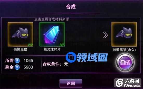 懒懒黑猫2+精灵球碎片5可合成:永久性小虎猫