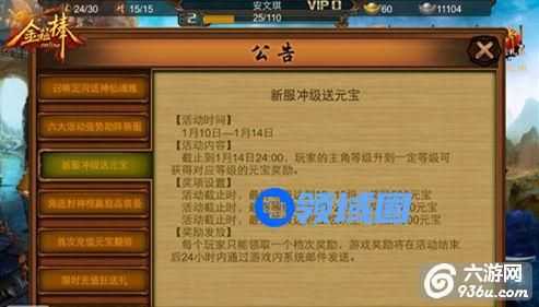 每次新服活动中,都有冲级奖励元宝的活动,在活动时间内达到指定等级会奖励大量元宝。小编尝试了一下,升级是非常快的哦,所以这个奖励一定要收入囊中。