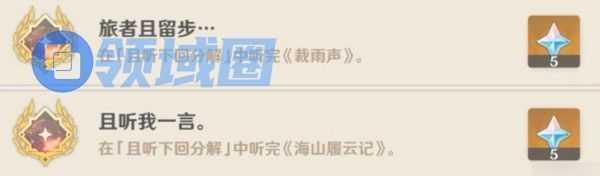 (1)当旅行者提交1次《海山履云记》纸条后,即可获得成就《且听我一言》