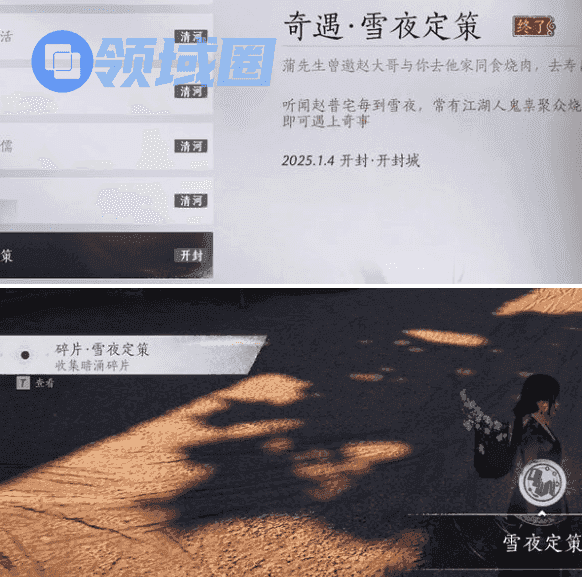 开封侠迹二·繁花谍影: 完成该任务即可获得一个碎片。