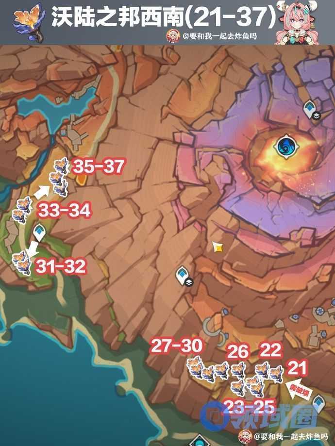 好了,大家只需要按上图的位置一个个去寻找主不可以了,大地图的具体位置都标出来了,很容易就艰找到云岩裂叶了!
