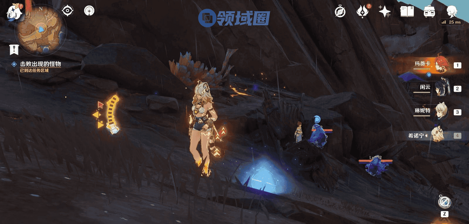 1、触发任务后,旅行者们需要经历三波战斗,依次消灭敌人,完成挑战。