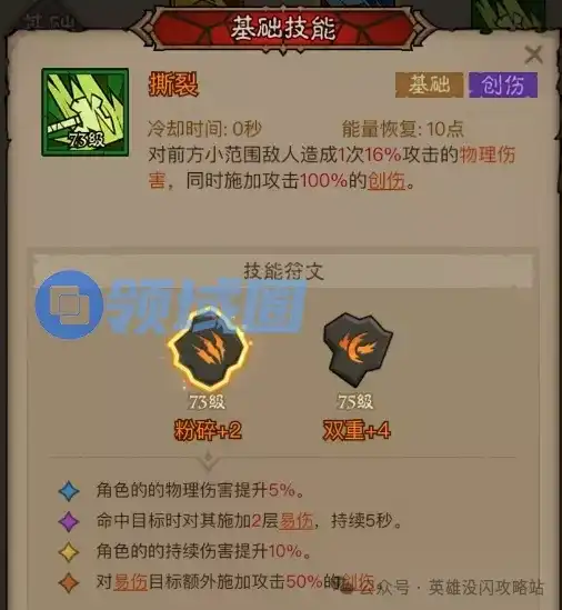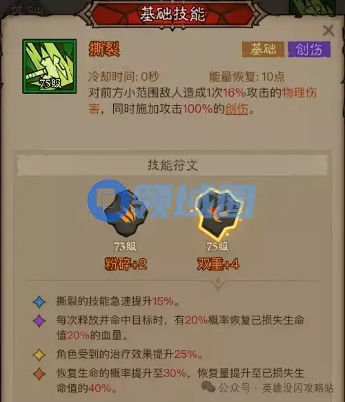 基础技能:撕裂——粉碎/狂乱——难遏/撕裂——双重