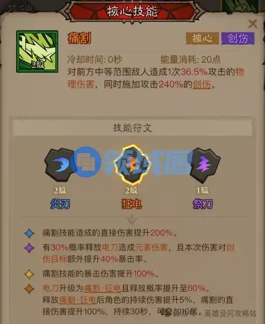 英雄没有闪游戏中狂电痛割流玩法的直接伤害与创伤效果进行了加强,且符文触发电刀时造成的伤害类型为元素伤害,使得痛割自身仅有物理类型伤害的短板得到补足,在面对单体BOSS时往往能打出自身战力2倍及以上的恐怖输出。